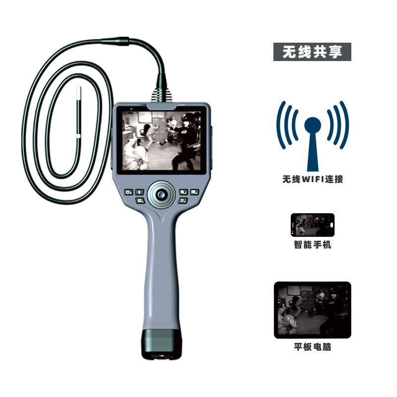 PC5是一款集成夜視紅外與白光兩種照明光源一體的軟管偵察窺鏡,夜視紅外光采用940nm低紅暴光源,紅外光與白光源之間可以任意切換使用。探頭控制可以更換管線模式,低噪音機(jī)械控制360度任意轉(zhuǎn)向。主機(jī)具備圖像無線實(shí)時(shí)共享,兼容多個(gè)終端顯示圖像功能。